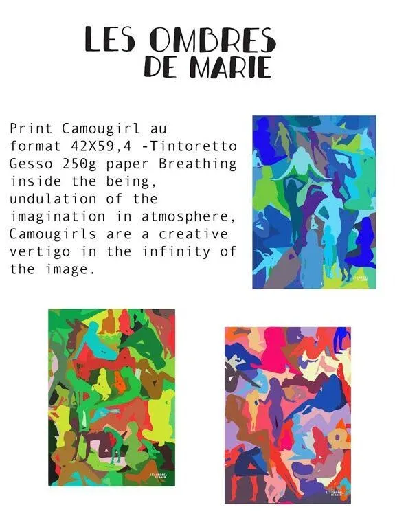 Chaque affiche décorative murale est une oeuvre d’art à part entière, créée avec passion et dévouement par une artiste talentueuse. Les détails minutieux et les couleurs vibrantes font de ces affiches des pièces maîtresses qui captivent le regard et stimulent l’imagination. Les Ombres de Marie est le résultat d’un travail autour des mouvements qui nous plongent dans un univers spectral où les visages s’effacent et où indentités disparaissent et semblent flotter.