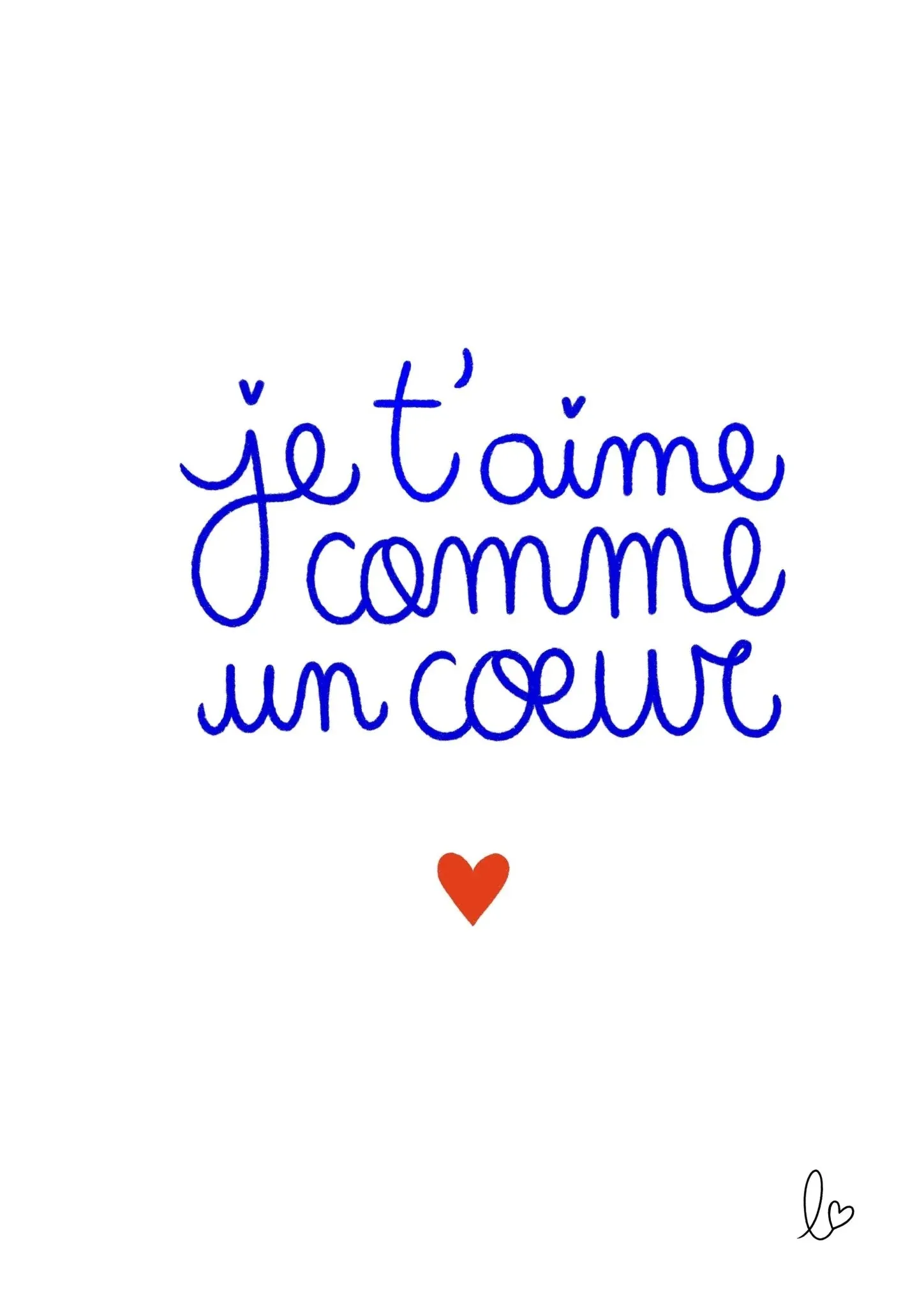 AFFICHE MURALE DÉCORATIVE « JE T’AIME COMME UN COEUR »- Illustration fait main